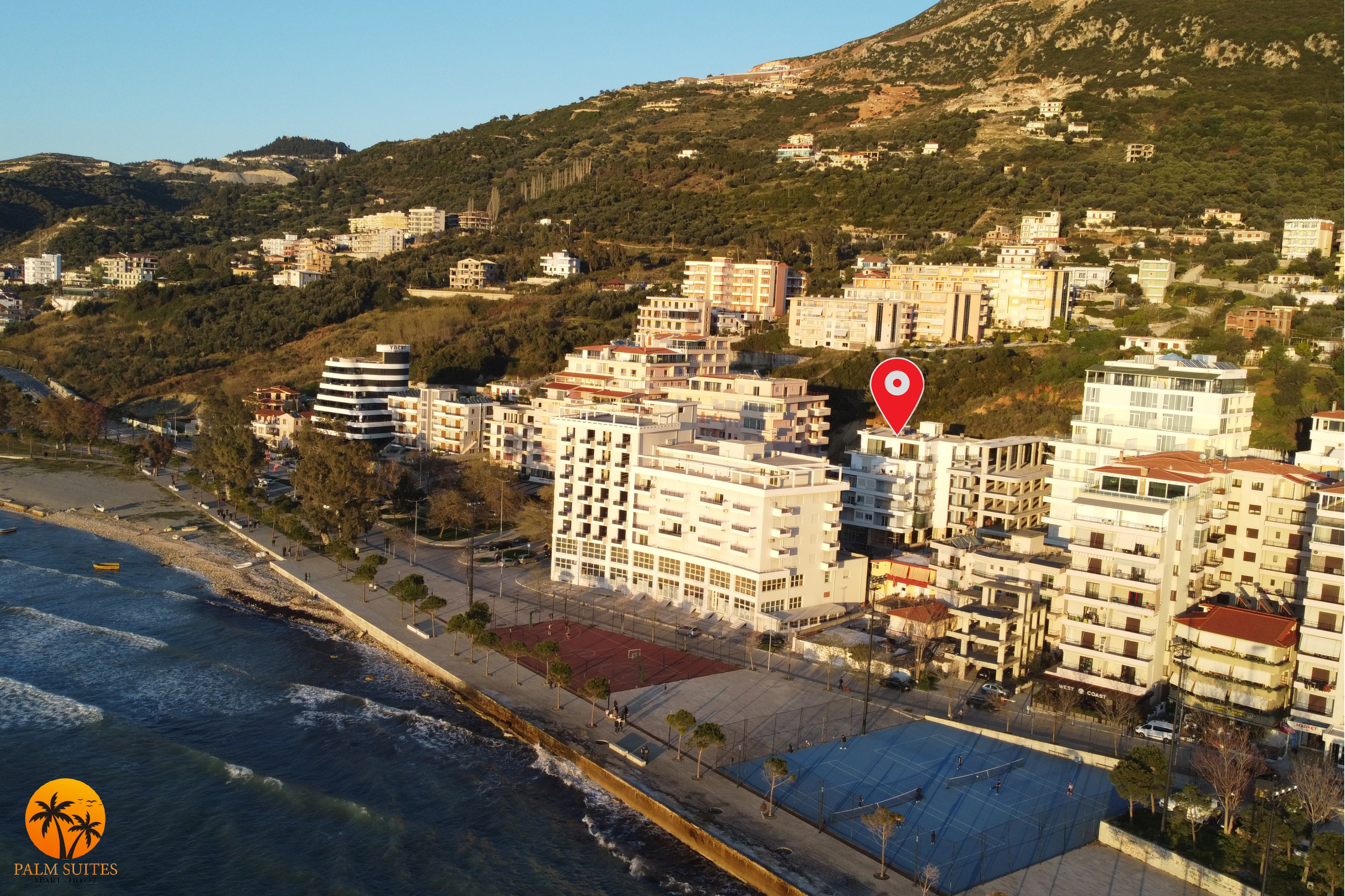 Palm Suites is located in Vlore, just 1 km from city,and only 50m from the beach, In one of the most beautiful areas of the city, in lungomare.